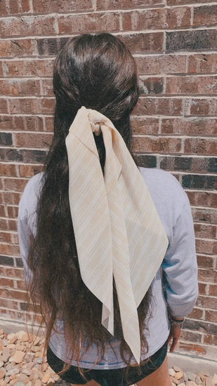 Striped hair scarf add instant polish to any pull back hair, it comes in two colors.
