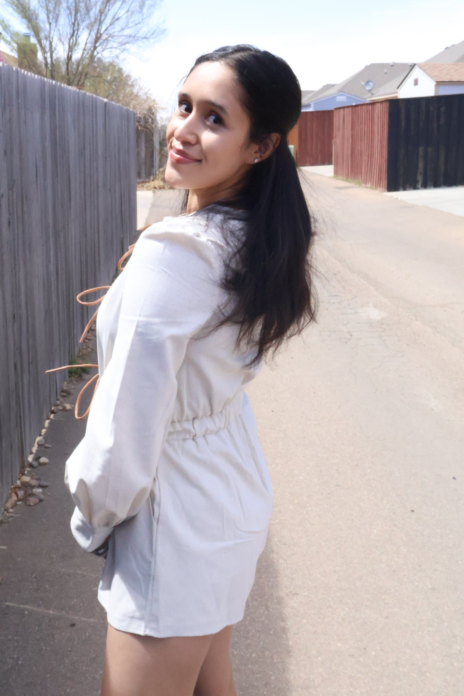 VEGAN LEATHER LACE-UP ROMPER – LONG SLEEVE, ELASTIC WAIST, BOHO CHIC OUTFIT